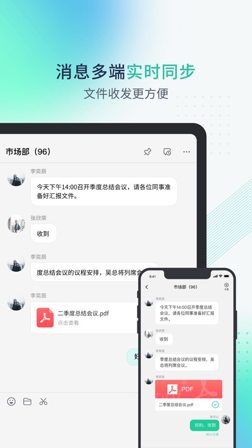 粤企云办公是一款专为智慧办公设计的服务平台,集成了即时通讯、通讯录管理、考勤等多种实用功能,旨在提升用户的协同工作效率。无论是个人还是企业用户,都能从中获得极大的便利。欢迎各位下载并体验这款高效的办公工具。 粤企云办公致力于推动国资国企的数字化转型,打造一站式智慧办公解决方案。我们提供的服务涵盖了即时通信、基础办公以及行业应用,为用户提供全面、高效的一体化办公体验。 该应用的功能特色包括:消息多端实时同步,确保用户无论身处何地都能及时接收并处理信息;已读未读状态一目了然,帮助用户更好地管理通讯;支持手机联系人和企业通讯录的全量查询,方便用户随时查找联系人信息;此外,还具备企业组织架构的展示功能,让用户对组织构成一目了然。