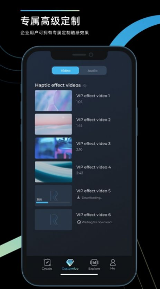 RichTap Creator是一款专为手机用户设计的触控助手软件,无论你是谁,都能轻松上手,享受它带来的极致体验。无论是在哪里,何时何地,你都可以使用它,而且操作非常简单。它提供了预集成的高品质触感模板、音频和视频,让你自由设计、制作和体验RichTap风格的触感样本。RichTap Creator是瑞声科技集团的产品,一个全品类设备触感(Haptics)整体解决方案,融合硬件、软件、算法和触感设计,实现跨平台的高品质触觉反馈应用。它提供了一站式硬件调试、软件集成、触感设计和咨询服务,为用户带来多重沉浸的应用体验。 RichTap Creator的特色在于它能让用户感受到音频和特效的真实触感,拥有丰富的版块满足更多用户的需求,而且使用非常便利,操作没有难度。它的亮点在于体验预集成高品质触感的各类丰富模板、音频与视频,自行设计、制作与体验原汁原味RichTap风格的高品质触感样本,还可以分享独具匠心的高品质触感或集成至自己的各类应用中去(通过账号升级实现)。 RichTap Creator的优势在于它的触感效果库非常丰富,拟真、音乐、游戏、打斗场景效果应有尽有;企业用户还可以拥有专属定制触感效果;它还支持可视化编辑,让你轻松制作可视化的触感设计。 如果你拥有X轴线性马达的智能设备,那么RichTap Creator将释放高品质触感的真正魅力!在这里,你可以体验预集成高品质触感的各类丰富模板、音频与视频;自行设计、制作与体验原汁原味RichTap风格的高品质触感样本;还可以分享独具匠心的高品质触感或集成至自己的各类应用中去(通过账号升级实现)。