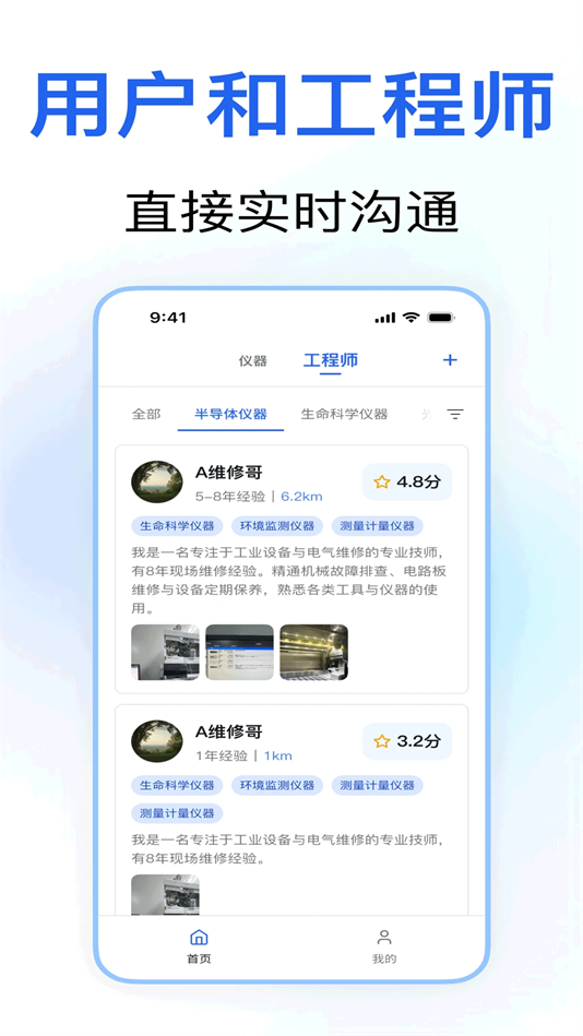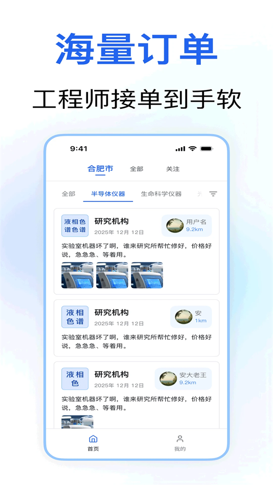 仪器通APP是一款专为仪器维修设计的接单平台,让用户能够迅速发布订单并寻求专业工程师的帮助解决难题。该平台汇聚了行业上下游的丰富资源与最新资讯,提供从接单到维修的一站式便捷服务。对于工程师而言,这是一个增收的机会,他们可以利用自己的专业技能高效接单,精准匹配客户需求,确保维修质量上乘,实现双方共赢。快来下载仪器通APP,共同推动仪器维修行业的便捷化发展。 软件简介 仪器通是一款利用互联网技术,旨在帮助用户快速对接维修工程师,同时为维修工程师提供高效接单途径的应用程序。我们整合了仪器设备产业链上下游的资源,致力于打造及时、专业的服务体验。