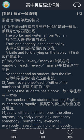 高中英语语法是一款专为高中生量身打造的英语学习工具。该应用提供了一系列全面而深入的英语教学课程,课程内容与多个版本的课本教材紧密相连,既适用于高考复习,也适用于日常学习,能够全方位满足学生在不同学习阶段的需求。此外,软件还设计了丰富多样的课后习题,涵盖了从词法到句法等多个方面,有效帮助学生掌握并巩固各种英语知识。为了让学生更有效地进行复习,软件还配备了贴心的错题本系统,能够自动收集学生在每次练习中的错误题目,便于学生进行有针对性的复习和提升。 软件特色: 1. 深度贴合教学大纲:该软件严格按照新课标的要求,系统而详细地介绍了英语语法的基础知识,致力于帮助学生巩固并提升英语语法能力。