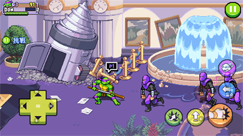 《忍者神龟施莱德的复仇》是一款基于经典忍者神龟形象的动作冒险游戏,玩家可以在其中见到那些耳熟能详的忍者神龟角色,无论是角色设计还是战斗模式,都完美复刻了原作。游戏允许玩家选择并扮演自己喜欢的角色进行战斗,任务丰富多样,每个关卡都有其独特的目标,完成即可顺利通关。游戏画面采用复古的街机风格设计。 游戏亮点: 1. 精彩纷呈的激烈对决,让玩家随时沉浸于格斗的激情之中,体验格斗的魅力。 2. 玩家需一路战胜各类敌人和首领,最终击败施莱德和克朗等邪恶势力。 3. 带来一场令人振奋的格斗挑战,提供多种刺激的对决挑战,享受战斗的刺激。 游戏优势: 1. 新内容和冒险等待玩家探索,还有众多副本任务等待完成。 2. 富有乐趣的格斗挑战玩法,让玩家在欢乐中挑战,享受格斗的乐趣。 3. 画质高清,细腻的人物建模为玩家带来逼真的视觉体验和感受。 游戏特色: 1. 玩家可从四个神龟角色中选择,每个忍者龟都有独特的招式、动作和技能。 2. 提供最畅快的战斗体验,操作简单易懂,让玩家轻松挑战各种关卡。 3. 关卡难度逐渐提升,地图随章节变化,让游戏体验更加丰富。 隐藏角色: - 第一关:NPC布恩位于大门后,需破坏大门解救。 - 第二关:NPC恩玛在街区尽头,容易错过。 - 第四关:NPC亚提拉在广告牌中。 - 第五关:NPC成吉思在地下道的大型闸口后,需破坏铁闸解救。 - 第六关:NPC拿破仑在“录音带”收集品附近的纸板宣传画后;NPC弗伦在商场街机区。 - 第九关:NPC拉斯普丁在热狗车(HOTDOG)后,破坏热狗车即可解救。 - 第十三关:在红色帐篷门前的宝箱后解救NPC达思。 - 第十四关:在BOSS战前,通过攻击石头上的植物可解救扎克。 中文设置教学: 1. 启动《忍者神龟施莱德的复仇》,点击屏幕开始游戏。 2. 点击options进入设置界面。 3. 在第一栏“language”中选择“中文”,即可将游戏切换为简体中文。 评测:这款游戏对新手友好,随时可挑战,展开刺激的战斗。玩法与端游一致,各种战斗技巧均可运用,助您通过更多关卡。