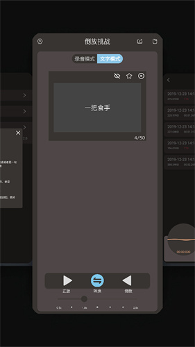 倒放挑战app是一款专为多人聚会设计的游戏娱乐应用,通过猜测倒放后的语音原意,激发大家的想象力与创意。用户还可以选择自己喜欢的歌曲进行倒放,以全新的方式呈现给朋友们,这不仅考验了用户的智慧,也提升了他们对音乐的理解与欣赏能力。用户只需简单操作,便可将自己录制的音频提交至系统,进行自动的倒放处理,在增加社交趣味性的同时,也满足了大家的好奇心。 软件特色: 1. 语音倒放功能:支持将任意语音片段进行倒放处理,为用户带来前所未有的听觉体验。 2. 文字转语音倒放:用户只需输入文本,即可将其转化为语音并进行倒放处理,让创意与乐趣无限延伸。