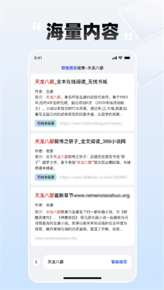 必访小说app是一款专注于免费阅读的阅读器工具,该工具汇聚了海量的文学作品,涵盖了玄幻、都市、言情、科幻、武侠、历史等多种题材。所有小说资源无分类展示,通过首页的热搜榜、综合榜、点击榜和活跃榜,读者可以轻松挑选心仪的小说进行阅读。智能小说搜索框位于首页顶部,只需输入小说名字、主角名字或作者名字,即可一键搜索到想看的小说。 必访小说的特色功能包括:提供正式授权的文学作品,确保用户体验的优越性和版权的合规性;具备昼夜切换的个性化选项,适应不同光照环境,呵护双眼健康。此外,该软件全面开放免费阅读权限,消除费用障碍,让书友尽情沉浸在文字的海洋。 必访小说的亮点在于:提供了一个纯净的阅读环境,无广告弹窗打扰用户的阅读体验;支持多种阅读模式,如日间模式、夜间模式等,满足不同场景下的阅读需求。同时,用户可以根据自己的喜好调整字体大小、颜色、背景等,以获得最佳的阅读体验。 如何使用必访小说app阅读小说呢?首先,打开app主页,点击搜索栏或选择想要观看的小说。软件中会根据联网搜索出多个阅读链接,选择其中一个打开。跳转出的提示框可开启纯净模式,进入阅读页面并屏蔽广告。在阅读模式中,用户可以进行页面设置,如调整字体大小和背景颜色等。 必访小说软件测评:必访小说提供了一个纯绿色的阅读环境,无弹窗、无广告,让读者们畅享阅读的乐趣。该工具整合了多个站点的小说作品,让读者随时阅读自己喜欢的小说。
