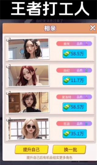《王者打工人》游戏免费体验 游戏中提供多样化职业道路,玩家能够根据个人爱好和志向探索规划个人职业生涯。在游戏中需灵活应对突发的加班、紧急任务等状况,考验玩家的决策和应变能力。游戏真实模拟打工生活,包括工作环境、工作内容以及人际关系等,带来沉浸式的体验。 《王者打工人》玩法亮点 游戏画面精美细致,场景栩栩如生,为玩家带来沉浸式的游戏体验。 玩法丰富多样且操作简单,适合各年龄段的玩家挑战和体验。 游戏中充满机遇与挑战,让玩家在成长过程中感受到喜悦与成就感。 通过与NPC互动或与其他玩家组队合作,获取更多工作机会和额外奖励。 《王者打工人》游戏特色细节 玩家可以选择并升级相应的技能树,根据市场需求调整职业发展路径。 为了提升自我和晋升职位,玩家需完成面试、训练和各类工作目标等任务。 透过投资、创业等手段建立自己的商业帝国,实现财富自由。 合理分配时间,平衡工作、生活与娱乐,维持身心健康应对职场挑战。 游戏内还有更多独特元素,如租赁或投资房地产增加被动收入,关注市场波动进行买卖,以及购买使用各类工具提升工作效率等。 《王者打工人》游戏评价 游戏画面简洁逼真,人物发展丰富,任务设计真实。玩家可通过加班、学习技能、结识同事等方式提升能力和收入,同时需合理分配时间,平衡生活与工作。游戏最终让玩家实现个人人生目标,值得一试。