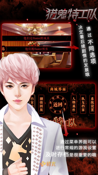 ***《猎鬼特工队》乃橙光公司倾心打造的一款RPG冒险游戏,承袭了橙光一贯的游戏特色,依旧以文字叙述为主,辅以精美的游戏画面和扣人心弦的故事情节。这款游戏将带你踏上一段充满未知的冒险之旅。若你是橙光游戏的粉丝,那你一定会喜欢这款游戏,因为游戏中将出现众多性格迥异的角色,主角对这些角色的态度将直接影响游戏的结局。如果你喜欢悬疑类游戏,那么千万不要错过这款作品! 内容介绍: 一位高冷傲娇的捉鬼少女,为了揭开父亲十年前的死因之谜,加入了名为【Hunter】的猎鬼组织。自此,她开始了一场场充满奇幻与惊奇的捉鬼旅程。在这个旅程中,她将与看似不和的队友共同面对挑战,揭示他们之间的过往与秘密。 游戏特色: 1. 捉鬼少女为查明父亲死因而展开冒险,故事扣人心弦。 2. 队友间看似不和,背后隐藏着怎样的故事?令人好奇。 3. 一系列惨案背后,究竟隐藏着怎样的阴谋?引人深思。 游戏亮点: 1. 剧情跌宕起伏,气氛渲染得极为到位,让人沉浸其中。 2. 游戏画面高清精美,男神女神级角色一览无余。 3. 操作简单易懂,解谜冒险充满乐趣与挑战。 小编点评: 这款游戏作品融合了悬疑、恐怖、冒险等多种元素,其最大的特点就是惊悚与刺激。封面上的男女主角在黑暗与血腥的背景下形成鲜明对比,标题的冲击力十足,让人瞬间产生探索的欲望。虽然游戏以灵异为主题,但实则并不恐怖,让人在紧张刺激的氛围中享受游戏的乐趣。"}