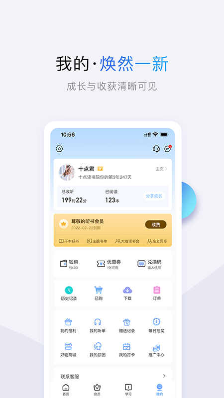 十点读书app,作为一款新兴的线上阅读工具,为用户提供了一个轻松获取各类文学与学习书籍的平台。这里不仅汇聚了丰富多样、精彩纷呈的小说资源,而且更新迅速,分类明确,等待你来探索。无论你是文学爱好者,还是渴望提升自我,十点读书app都能满足你的需求。 **十点读书app介绍**: 十点读书,通过精品有声书、大咖精品课以及共读活动,与数百万书友一起沉浸在阅读的世界里。我们不断推出新内容,以温暖的音频、生动的短视频、优美的文章和丰富的图片,帮助你实现自我蜕变,遇见更好的自己。此外,我们还特别推出了十点读书会员服务,让你有机会聆听上百门优质课程,参与抽奖活动,赢取丰厚奖励。 **十点读书app特色**: 【十点听书会员】:成为会员后,你将享受七大特权,包括免费畅听1000本好书、每周打卡分万元奖金、与大咖领读分享、加入共读社群、亲友共享特权、赠送好书以及丰富的主题书单。 **主要功能**: 【精选好课】:由行业顶尖导师分享专业技能,涵盖升职加薪、变美变瘦、人文社科、女性成长、家庭教育等多个领域。例如,创意PPT制作、Excel快速学习、护肤课程、家庭亲子教育等,全方位提升你的个人品质。 【海量有声书】:提供全网精品有声书,包括都市情感、历史军事、悬疑推理等多种类别。你可以随时收听《安徒生童话故事集》、《白鹿原》、《悲惨世界》等经典作品,并享受刘慈欣、顾西爵等名家的精彩演绎。 **更新日志**: - 新增“大咖讲书”栏目,每周推荐一本必读经典,并由重磅大咖进行独家解读。 - 修复了用户反馈的一些问题,提升了使用体验。