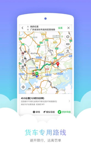 凯立德导航货车版是一款由深圳市凯立德欣软件技术有限公司特别为货车司机设计的导航应用。它解决了货车司机在导航过程中因不了解高度、宽度、区域、重量等限行信息而可能遇到的困境。该应用广泛收集了国内的限行数据,并提供了专为货车定制的POI和宜行道路。您只需输入目的地,导航即可自动启动,提供清晰的地图路线和多种贴心服务。 ### 应用描述 凯立德导航货车版专为货车司机打造,结合了全国首张货运地图,收录了最新的限行数据和货运专用POI,以及专为货车设计的宜行道路。这款应用可定制货车路线,有效避开限行区域,避免违章罚款。通过清晰的地图展示,您只需输入目的地,导航便会自动启动,提供多种实用功能。 ### 优势 - **货车导航引擎量身定制**:凯立德针对货车导航的特殊需求,开发了专用的算路引擎,根据货车的各项参数(如车型、高度、宽度、长度和重量),为司机规划最佳路线。 - **专业货车地图与丰富的POI展示**:持续更新全国范围的货车POI和限行数据,提供丰富的配货站信息,让司机轻松找到货源。 - **行业运单管理**:实时查看运单进度,授权货主查车,货物位置一目了然。 ### 亮点 1. **智能线路规划**:根据货物地点和目的地规划优质线路,考虑车长、车型、轴数等因素,送货返程无忧。同时,根据出行时间动态预估限行路段的影响,提供智能提醒。 2. **精准导航**:专业货运地图、货运专用POI展示、实时更新的限行数据,优化导航中的限行语音提醒,播报内容清晰准确。 3. **行业运单管理**:实时查看运单进度,授权货主查车,货物位置一目了然。 ### 使用指南 - **如何导航**:下载安装软件后,在首页选择【路线】;定位当前位置,输入目的地;导航将自动搜索并提示操作。 - **如何连接手机**:打开应用,点击用户头像;选择更多功能,找到蓝牙连接;启动蓝牙并确保手机处于开启状态以便连接。 - **如何升级**:访问官网并点击“在线升级”,登录账号后添加设备信息开始升级。 ### 常见问题解答 - 使用实时路况功能是否收费?该功能免费,但需车载设备上网产生少量流量费。无上网功能的车载导航可使用“云.播报”功能了解路况。 - 如何在新的周边查找中查找信息?POI信息分为交通设施、餐饮美食等六大类,用户可在这些类别中查找所需信息。 - 什么是云.播报?如何使用?云.播报通过手机播报导航路线上的路况信息。用户选定路径后生成二维码,手机扫描即可实时查看收听路况信息。 我们不断修复已知问题以提供更好的用户体验。