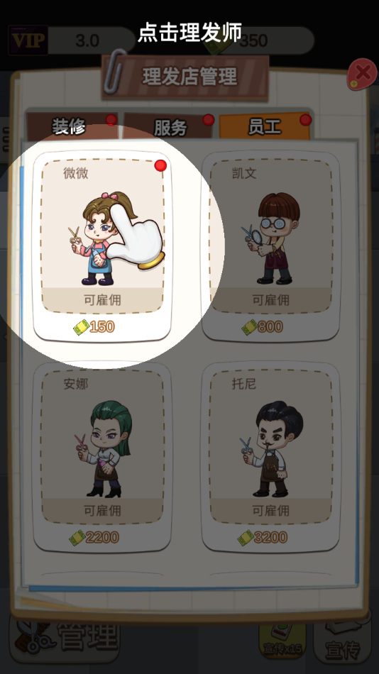 《发型沙龙大师》是一款以卡通风格呈现的模拟经营游戏,让你沉浸在打造理想理发店的乐趣中。游戏不仅充满趣味,还极具真实感,每日吸引着形形色色的顾客。你需精心策划理发店的装修,购置并布置各类基础设施,然后才能正式开业。通过理发所得的收入,你可以进一步升级设施,提升顾客体验。经营过程中,客流量是成功的关键。除了布置一个吸引人的环境,你还需要满足顾客对多样发型的追求,并通过宣传增加人气。随着店铺规模扩大,招聘并管理员工变得至关重要。 游戏特色: 1. 扮演理发店老板角色,在助手指导下学习经营技巧。 2. 从装修、招募员工到宣传,全方位打造个性化理发店。 3. 感受美发与管理的双重魅力,设计时尚发型,举办丰富折扣活动。 4. 聘请技术高超的理发师,提升店铺声誉。 5. 创造出既美观又舒适的发型,吸引更多顾客。 6. 提供优质服务和合理价格,打造高端形象,吸引顾客光顾。 游戏攻略: 1. 初次进入游戏时,点击“管理”按钮购买或替换设施。由于资金有限,建议先从破旧的理发台开始。 2. 购置基础设施后,点击“管理”按钮招聘理发师。 3. 完成前期准备后,进入营业阶段。顾客会提前告知所需发型,点击顾客头上的气泡即可开始理发。 4. 为增加客流量,点击“宣传”按钮发放传单。 5. 每日签到还可领取丰厚奖励。 游戏优势: 1. 研发更多经营策略,迎接挑战。 2. 学习不同发型设计,提供卓越体验。 3. 解锁多样装扮风格,享受游戏乐趣。 游戏亮点: 1. 通过独特管理模式开发新颖发型,满足客户需求,赚取金币。 2. 注重服务吸引更多顾客,用理发所得金币解锁装饰品。 3. 每天接待不同顾客,根据需求提供个性化发型和发色选择。 4. 精美游戏画面让你身临其境地经营理发店,体验老板生活,培养生意头脑和战略规划能力。 更新日志: v2.0.0版本修复了游戏中的bug并优化了用户体验。