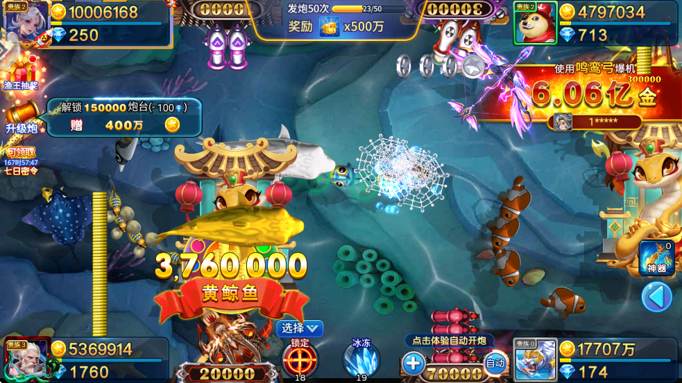 《大炮捕鱼》是一款专为捕鱼游戏爱好者量身打造的休闲手游,它完美复刻了经典街机捕鱼的玩法,呈现出令人惊叹的精美画面。游戏内活动丰富多样,保证玩家在享受乐趣的同时,还能体验到极高的爆率和丰厚的福利。无论是新玩家还是老玩家,都能在这款游戏中找到属于自己的激情与乐趣。如果你热爱捕鱼游戏,那么《大炮捕鱼》绝对是你不可错过的选择。 《大炮捕鱼》手游介绍: 捕鱼游戏界迎来了前所未有的大革新!对于仍然沉浸在传统捕鱼游戏的玩家来说,是时候迎接新的巨作了—《大炮捕鱼》! 这款游戏由国内顶尖的美术团队和技术专家团队携手打造,从画面到爆率,再到倍率,都进行了全面升级。在《大炮捕鱼》中,你将体验到前所未有的视觉盛宴和刺激的游戏过程。
